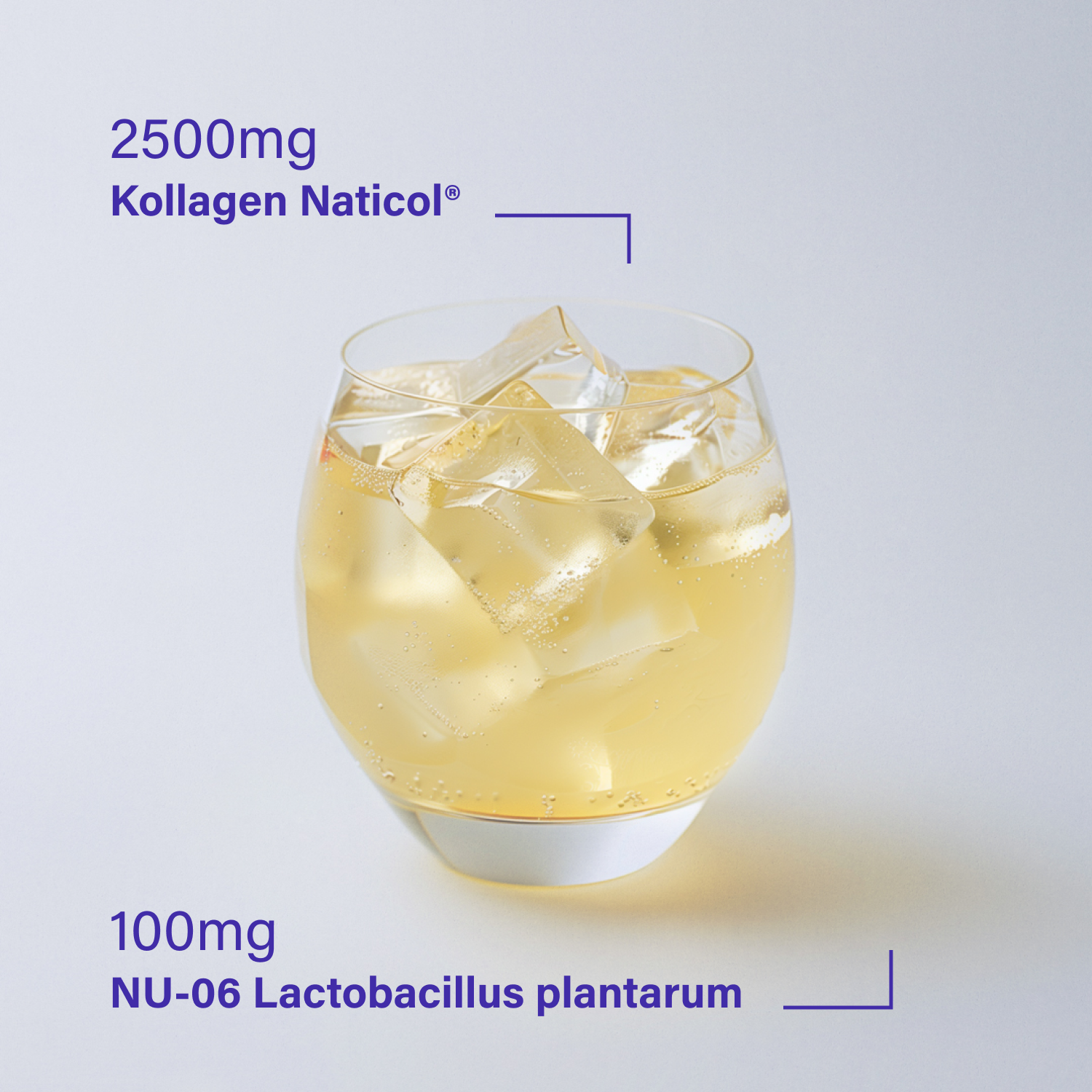 Dank einer einzigartigen Kombination aus wissenschaftlich geprüften Inhaltsstoffen wie Naticol® Kollagen, einem patentierten Bakterienstamm, Hyaluronsäure, Biotin und Vitamin C unterstützt diese Formel deine Haut optimal – für mehr Elastizität und Strahlkraft.