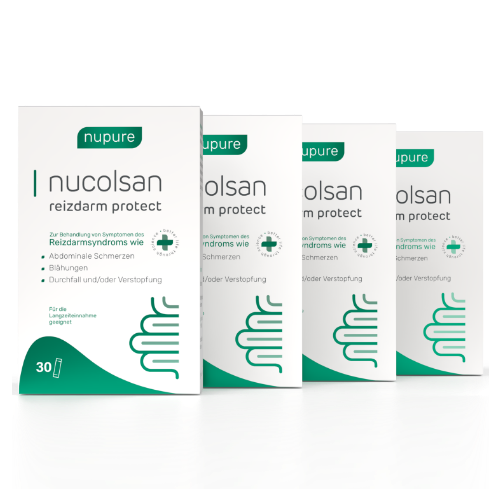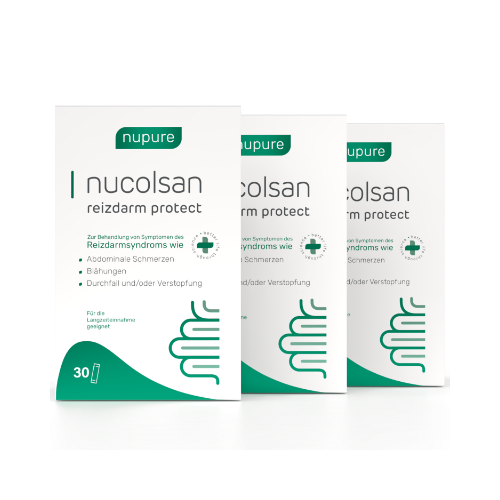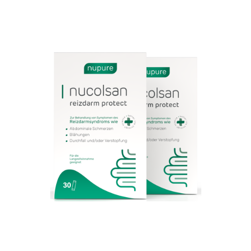 Nupure nucolsan reizdarm protect ist ein zertifiziertes Medizinprodukt zur Behandlung von Symptomen des Reizdarms wie Blähungen, Bauchschmerzen und Unwohlsein.