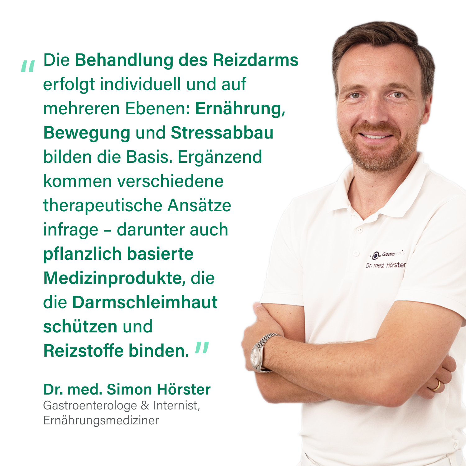 „Pflanzliche Präparate können helfen, typische Reizdarm-Beschwerden gezielt zu lindern – etwa durch Schutz der Schleimhaut, Bindung von Reizstoffen oder beruhigende Effekte auf das Darmnervensystem. Wichtig sind eine gut abgestimmte Zusammensetzung, passende Dosierung und eine hohe Verträglichkeit.“