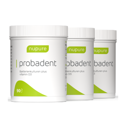Vitamin D3 übernimmt eine wichtige Rolle bei der Mineralisation von Knochen und Zähnen. Zahnschmelz ist das am stärksten mineralisierte Gewebe in unserem Körper und als solches auf eine ausreichende Versorgung mit Vitamin D angewiesen. Deshalb enthält nupure probadent zusätzlich Vitamin D3.