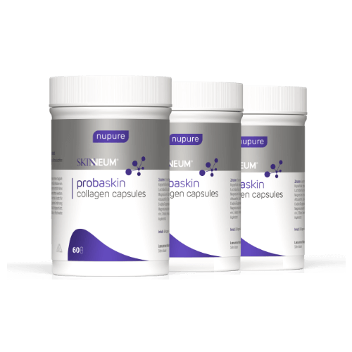 Idealerweise sollte die Einnahme von probaskin Kollagenkapseln ein fester Bestandteil der täglichen Hautpflegeroutine werden. Wir empfehlen, nupure probaskin Kollagenkapseln mindestens 3 Monate lang einzunehmen, um der Haut und der Darmflora genügend Zeit zur Regeneration zu geben.