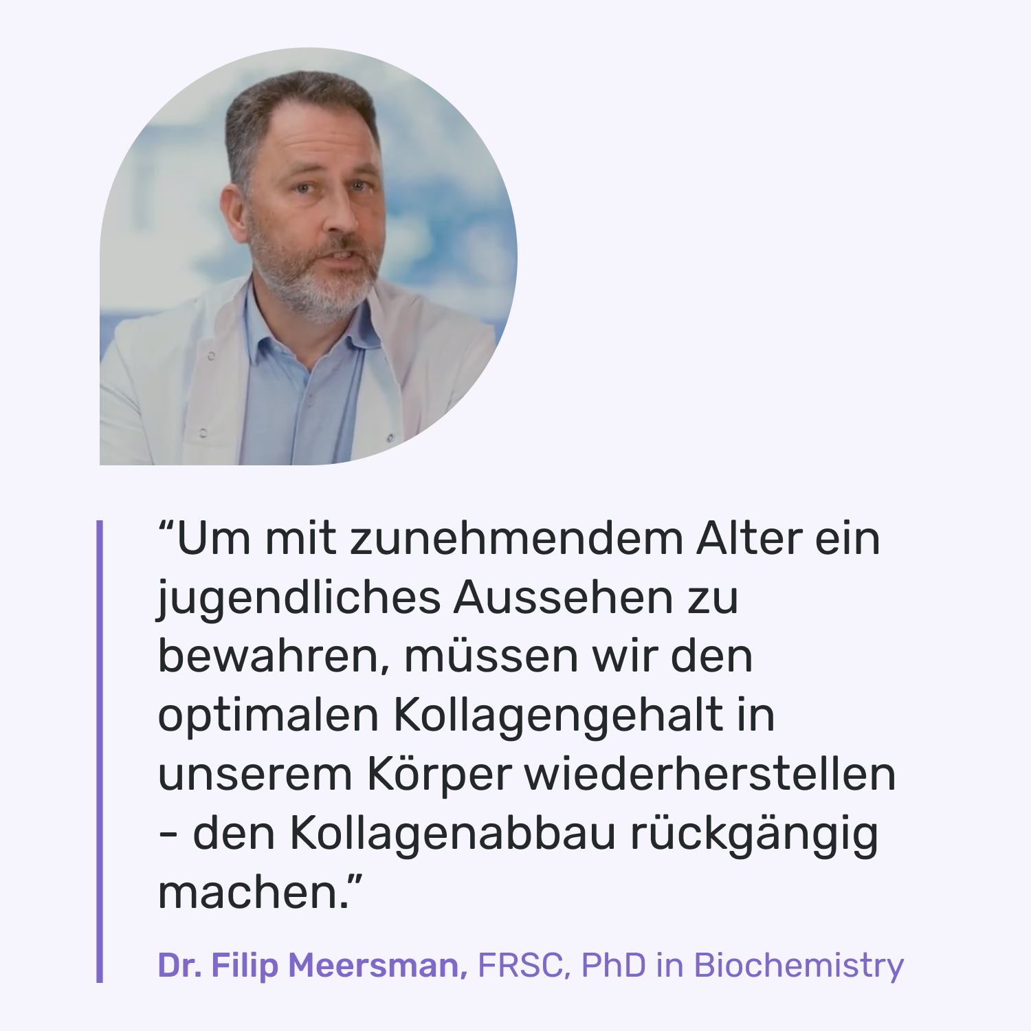 Um mit zunehmendem Alter ein jugendliches Aussehen zu bewahren, müssen wir den optimalen Kollagengehalt in unserem Körper wiederherstellen - den Kollagenabbau rückgängig machen.